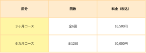 定期クラス「Minoaka(ミノアカ)」料金表