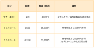 ※単発での参加は受け付けていません(下記は比較用の参考価格です)